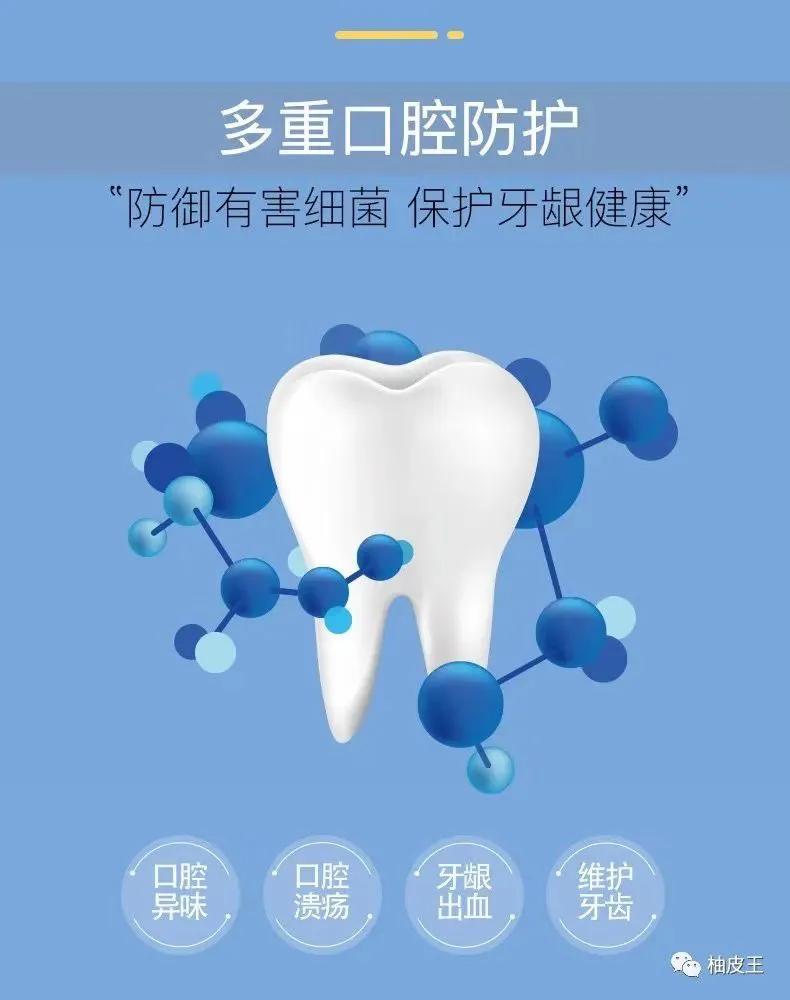 具有美白健齿、预防口腔溃疡的作用,还能改善牙龈敏感、蛀牙、牙龈出血、牙结石、口腔上火、异味等多种口腔问题。